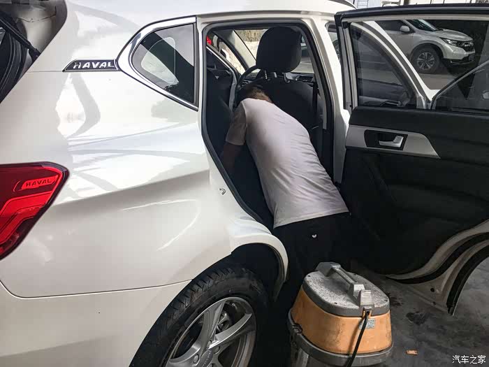 表面洗好了,开到旁边来吸车内的尘,和清洁车内饰。眼前的哈二已经很干净了。洁净如新。
