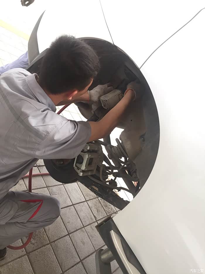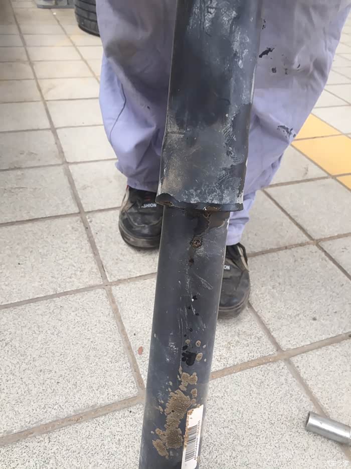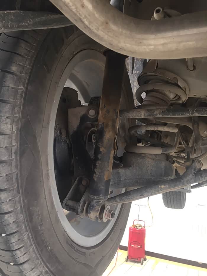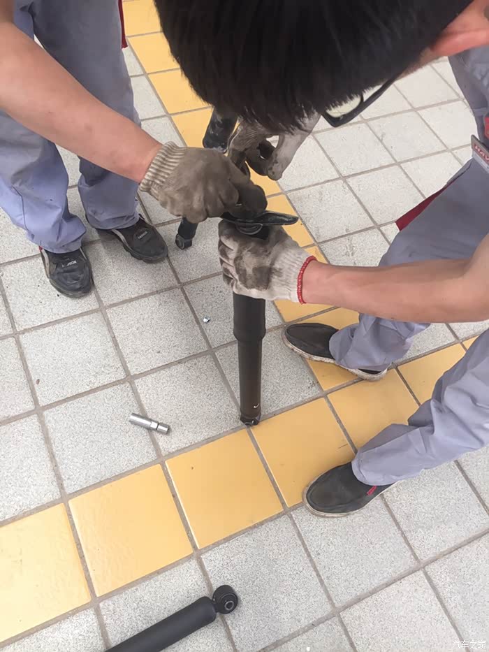 前段时间开着小二跑了趟老家的山路,一个崖子没注意,直接给卡住了,更要命的是没在意,开下来狠狠的颠了一下,直接把减震器颠出了油,当时那个心疼啊,回来赶紧联系SSSS店维修,今天约了时间,早早的赶紧来修。