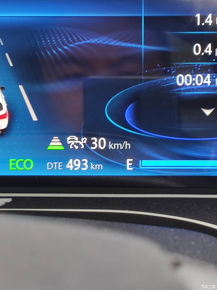 当你使用ACC后停车熄火前会显示当次的数据记录,这样显示只有一格绿色就是巡航跟车时距1秒,适合低速巡航,右边30km/h就是定速巡航30公里每小时,也是小七可以设置的最低定速时速。