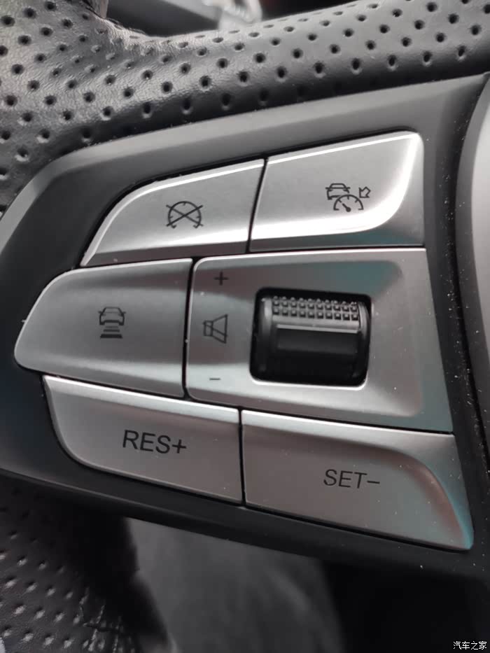 在方向盘左边区域,最左侧按键就是调整这个跟车距离的,需要在开启ACC后才可以调整,每按一次下调一格,最低一格1秒,再多按一次就循环回2.4秒
