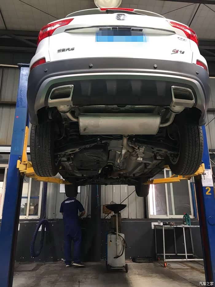 经过检查,一切正常,师傅正在检查螺丝那些是否有松动的痕迹。其实长安cs75的离地间隙达到了190mm,所以一般的路段时不会磕碰到底盘的。