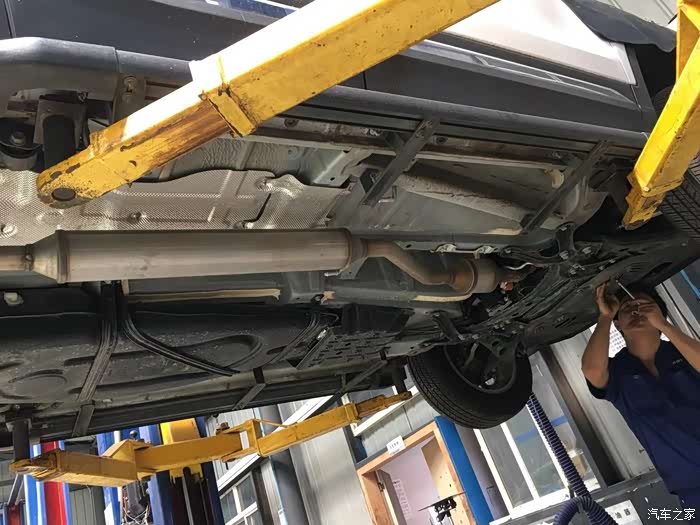 更换完成后,因为经常跑拦路,所以要求师傅们帮我把车升起来,检查一下底盘是否有磕碰。