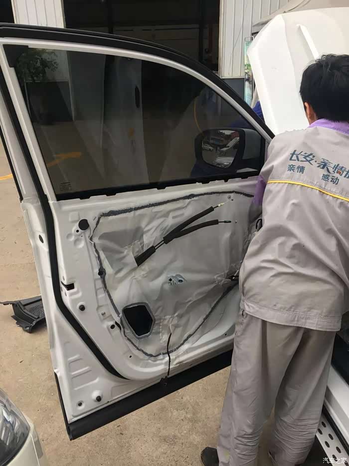 更换限位器是必须要拆掉内门板,拆开后可以看到厚厚的隔音棉,不得不说长安的做工非常的棒。