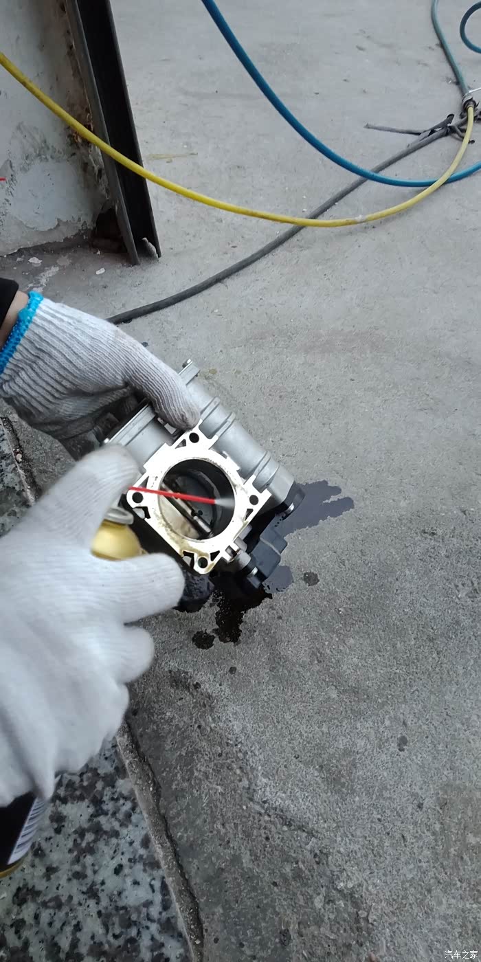 对准节气门口开始喷洗。