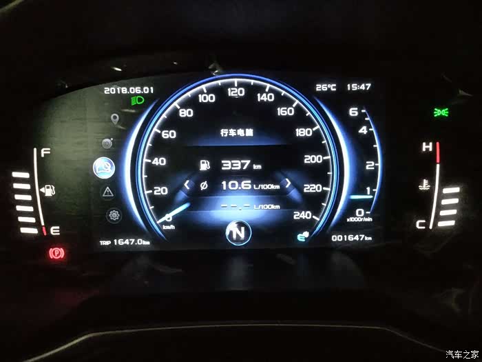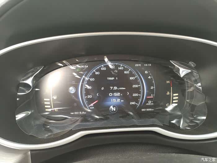 要说油耗的话,从提车说吧,提车时候表显里程是25公里,油耗显示10.3。
