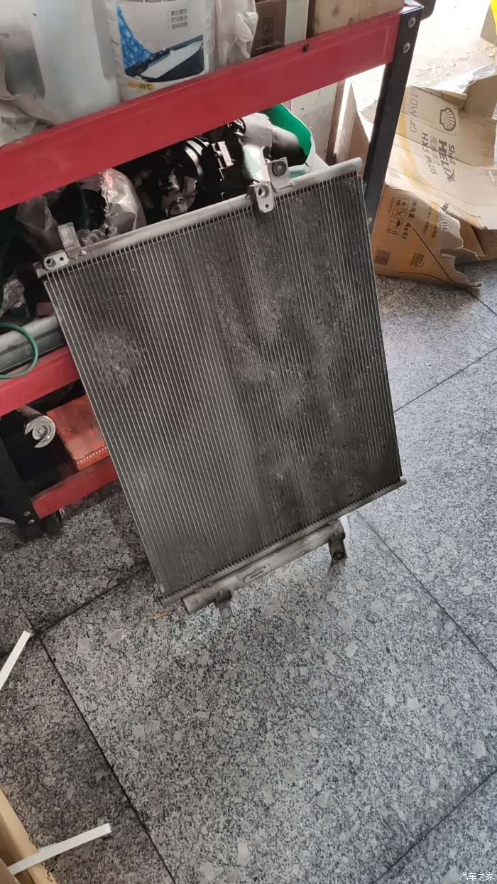 还有同学记得我去年换喇叭的改装吗?空调坏了就在换完喇叭之后,问题就是完全不制冷了,因为自己也不是很懂车就问了一些修理的朋友,说是检查一下冷凝器有没有破损,重新仔细检查了一遍之后发现安装喇叭螺丝后面有一个小孔,问题就出在这,回忆当时安装撕的时候可能用力过猛伤到了冷凝器漏氟导致空调不制冷。