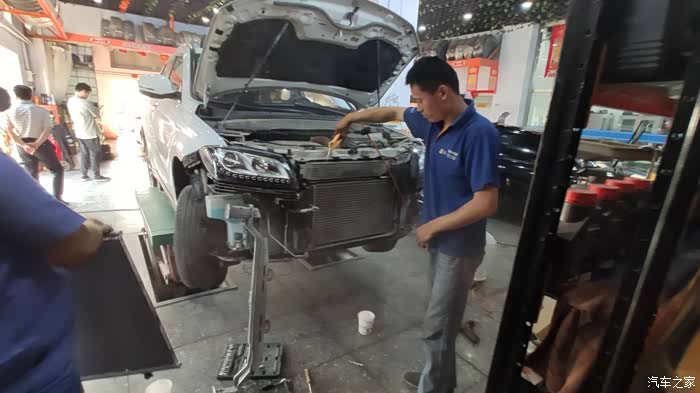 因为之前跟这家维修店咨询过,互相留了联系方式,提前预约下班后17:10到达维修店,两位师傅马上进入工作状态—拆前包围。