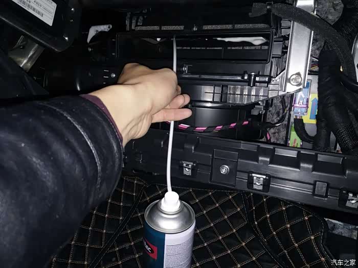 左侧的出风口、后排的出风口喷涂除臭,随后把空调滤芯复原