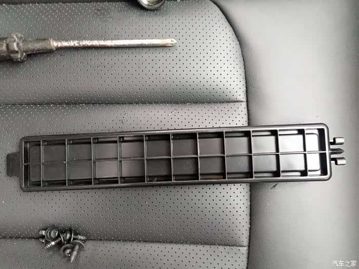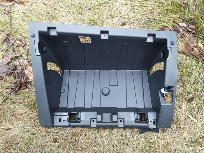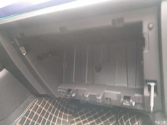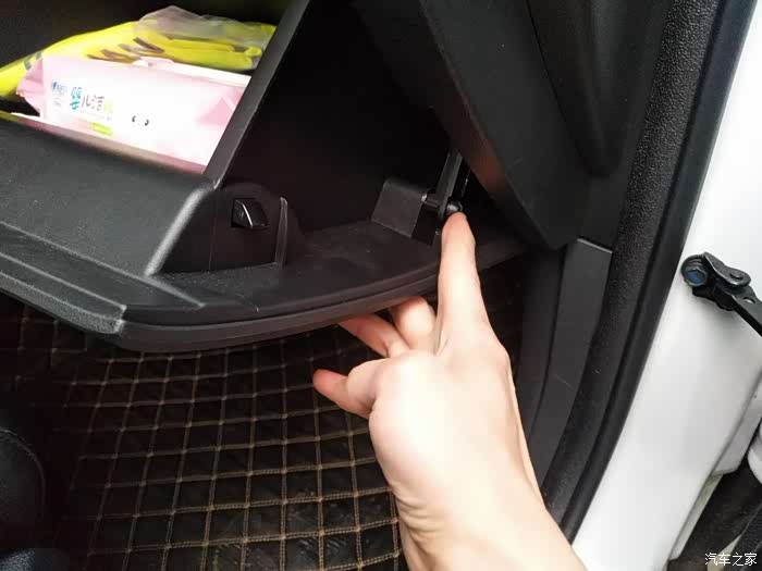 打开扶手箱,用手把这个塑料件推出去扶手箱就可以拿出来