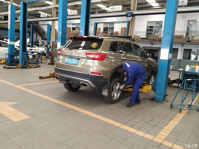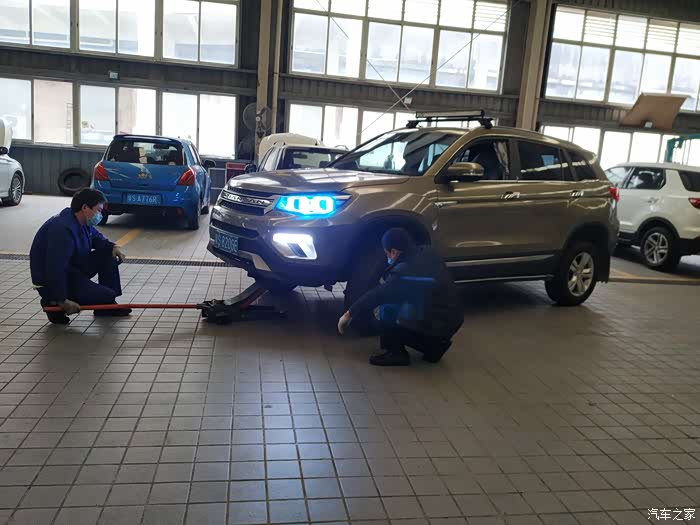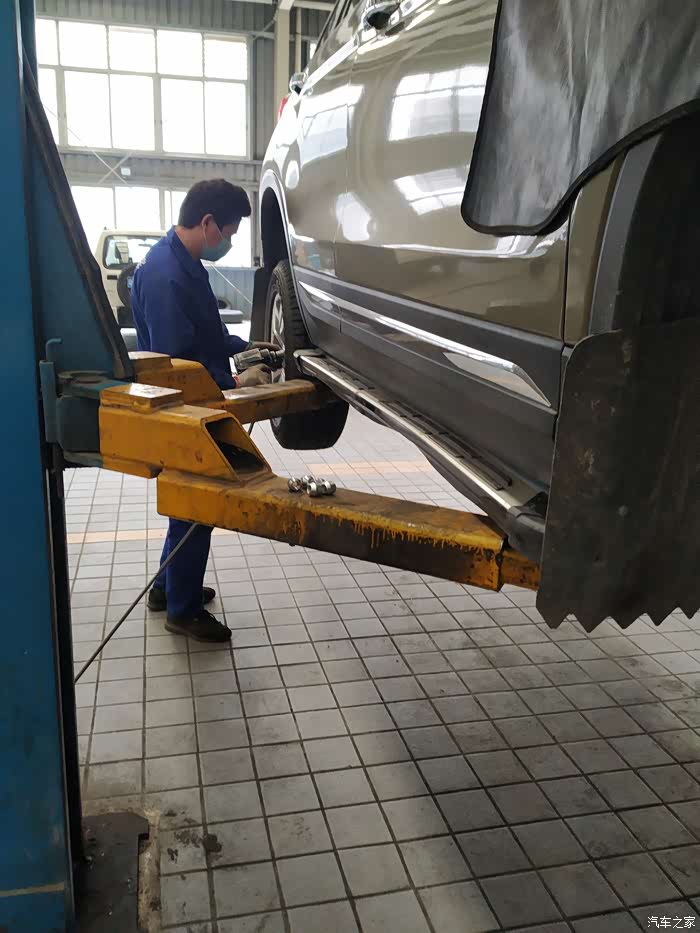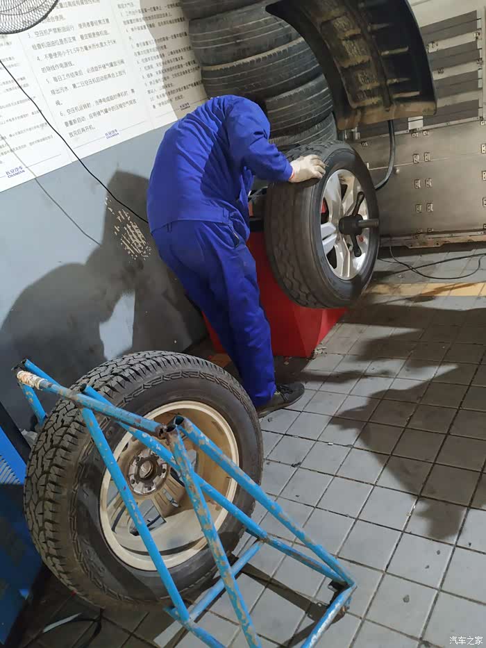 一个师傅去给我做动平衡,另外一个师傅给我检查底盘和四轮