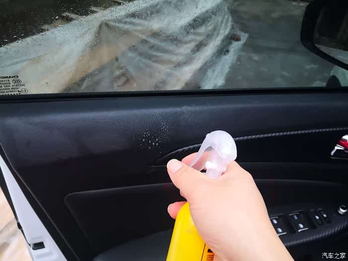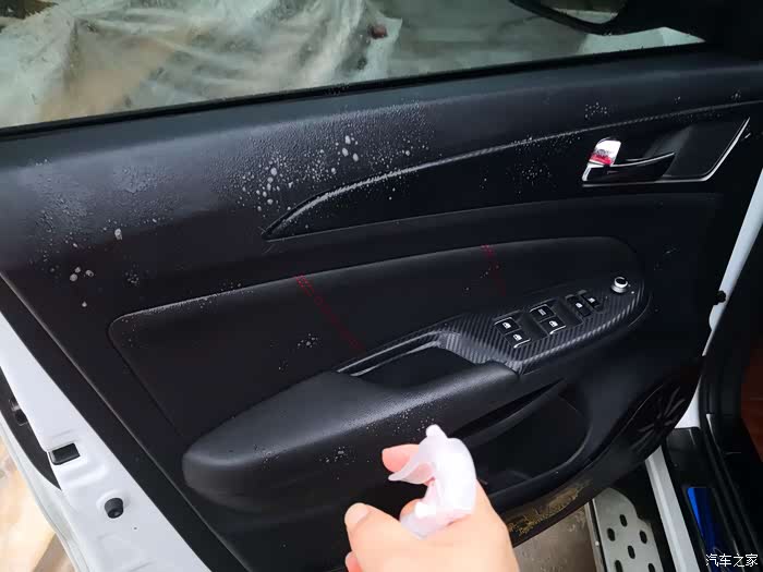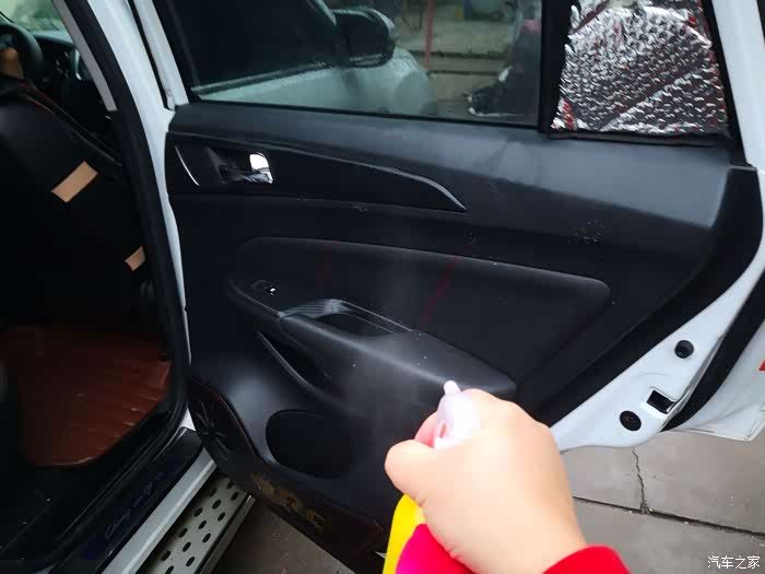 包括后门也同样要喷洒。然后用毛巾均匀的擦拭干净。