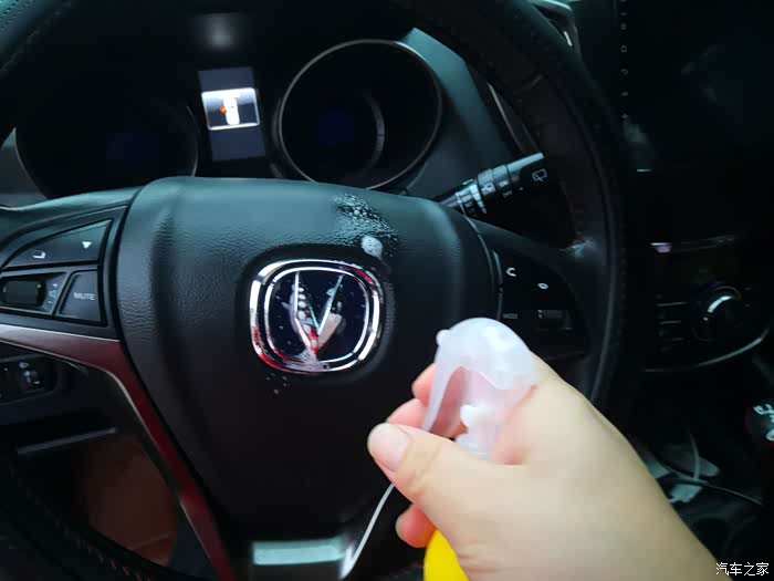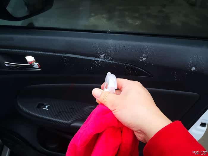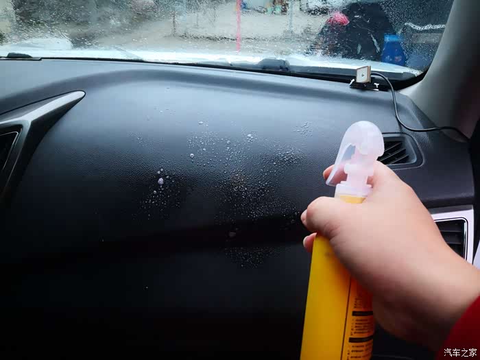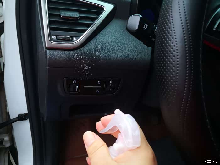 中控台表面我们也要喷撒。等待一会儿,然后用干净的毛巾擦拭均匀。
