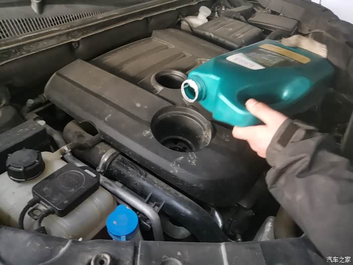 倒入机油。