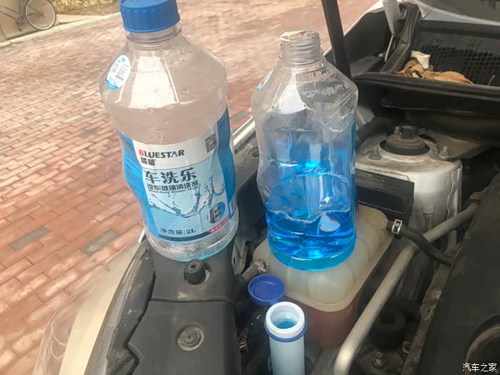 自己亲做实验,水壶里一点玻璃水都没有了。两瓶两升的玻璃水,