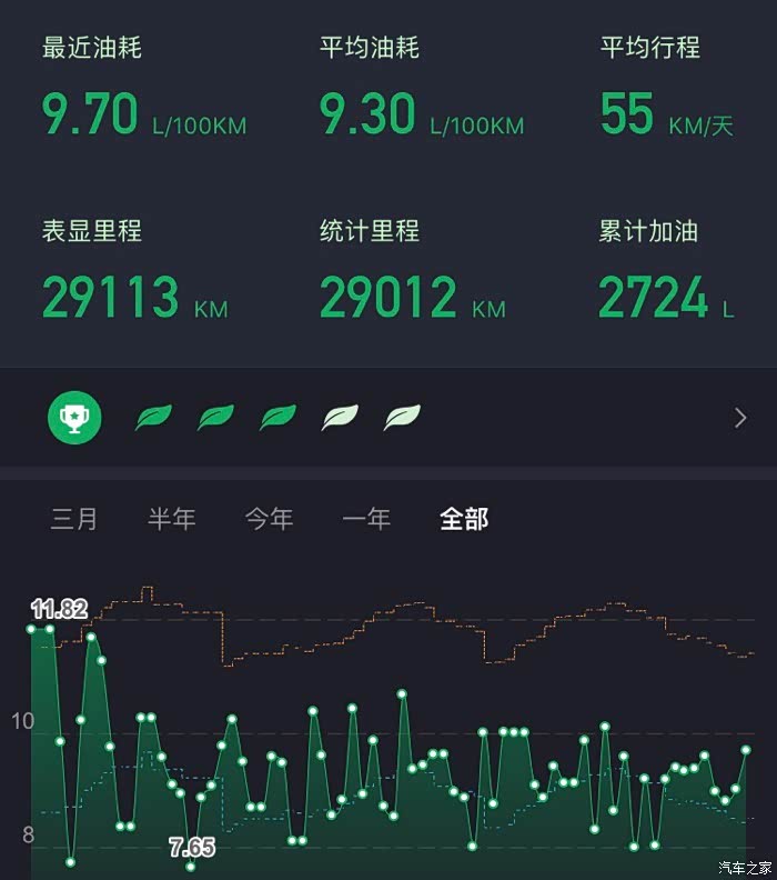 我是2017年11月底购入的2017款旗舰型VV5,当初购买的时候就知道油耗会偏高,但是对于数值其实心里也没有概念,所以说我对自己做了一个可以说是很好的习惯,那就是用软件去记录每一次加油的情况,希望在长时间的使用以后,可以得出一个相对公平合理的结论。可以预料到的就是肯定有高有低,而最终的会趋于平稳。