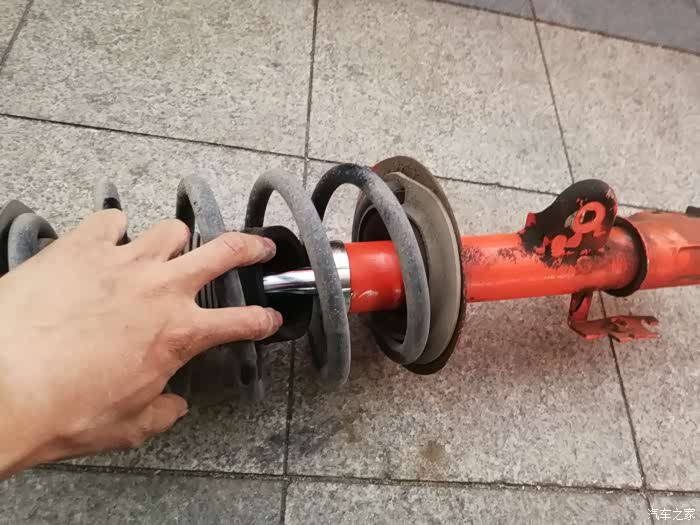 就得减震筒拆下来,把好的备件装回去。