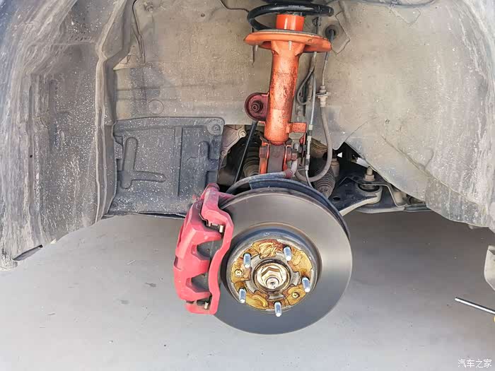 检查中发现左前轮悬挂的减震筒里的液压油有点漏油,考虑到安全,决定换个减震筒。