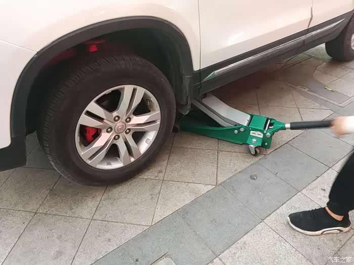 把车放下来,用千斤顶定期车身,先拆轮胎才能拆前悬架上的减震筒。