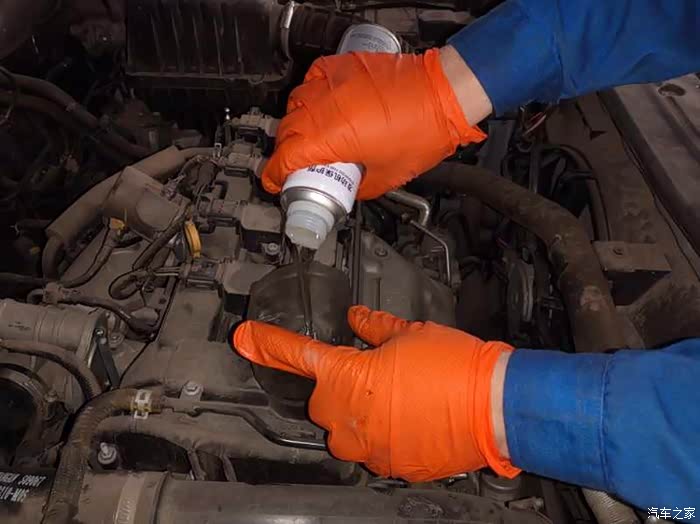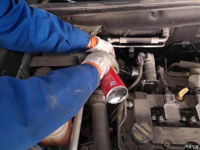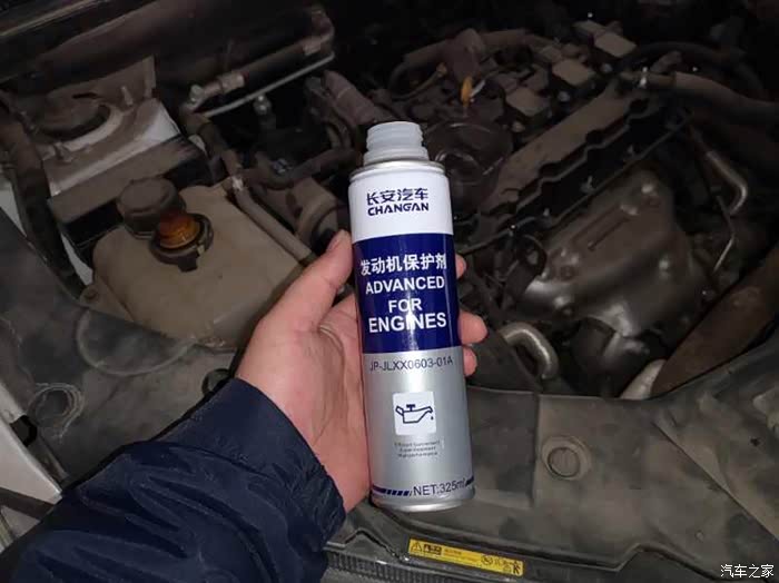 在注入机油之前要先注入发动机保护济,这个发动机保护济还是比较有用的……