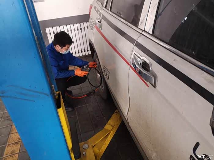 办理保养手续以后,维修师傅把75开到工位上,4S店上班的师傅没有全部都上班,轮流值班,所以保养需要排队的……