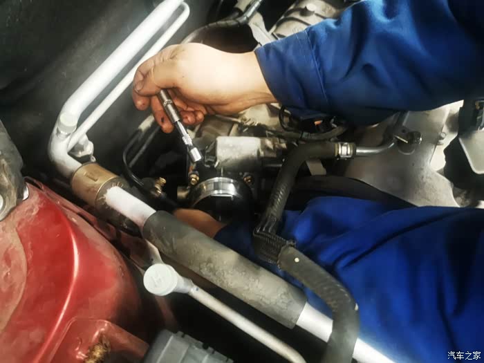 安装节气门,看维修师傅非常轻松,估计让我们自己清洗,半天时间忙不出来