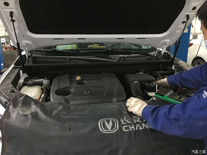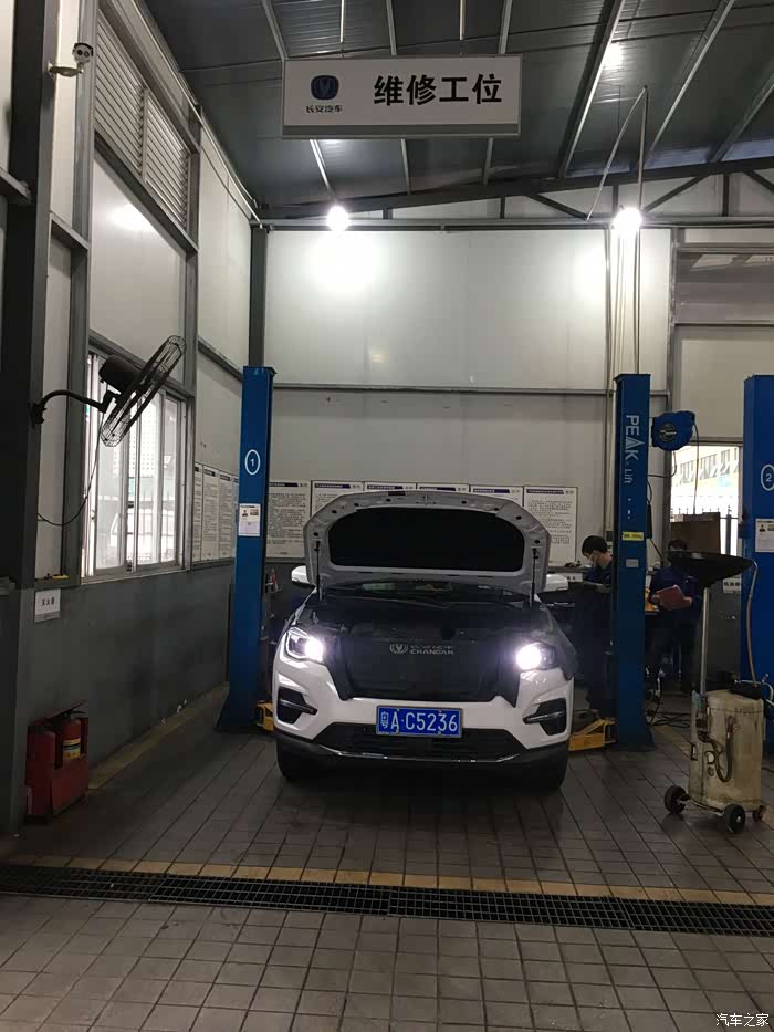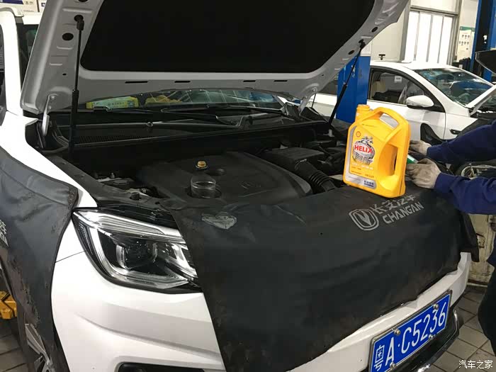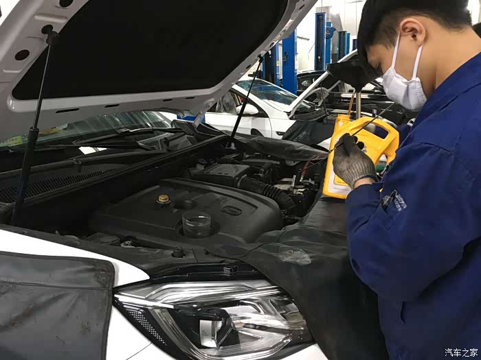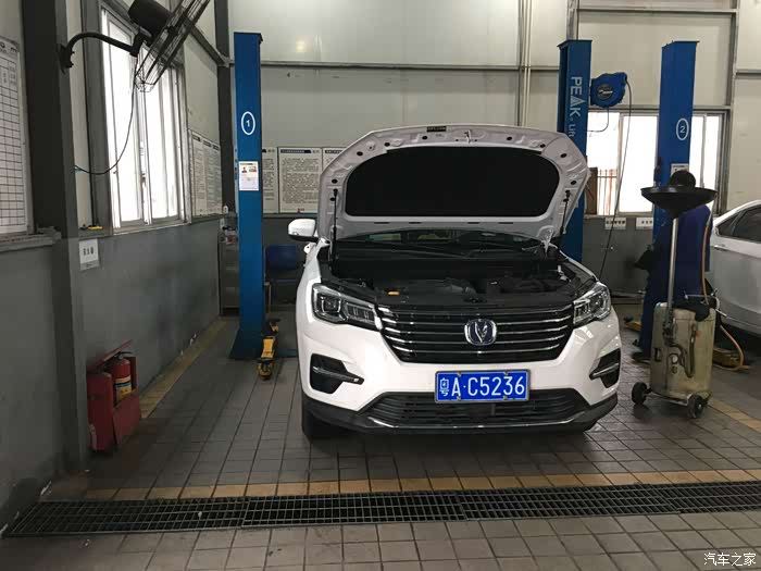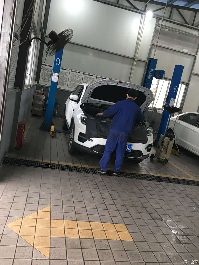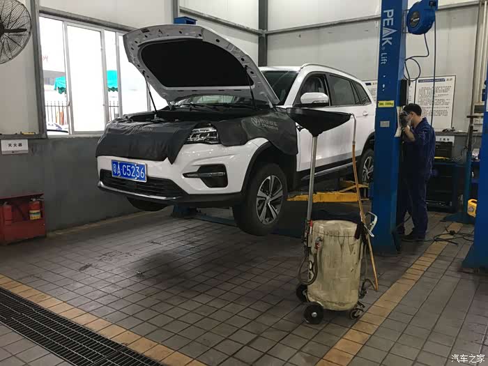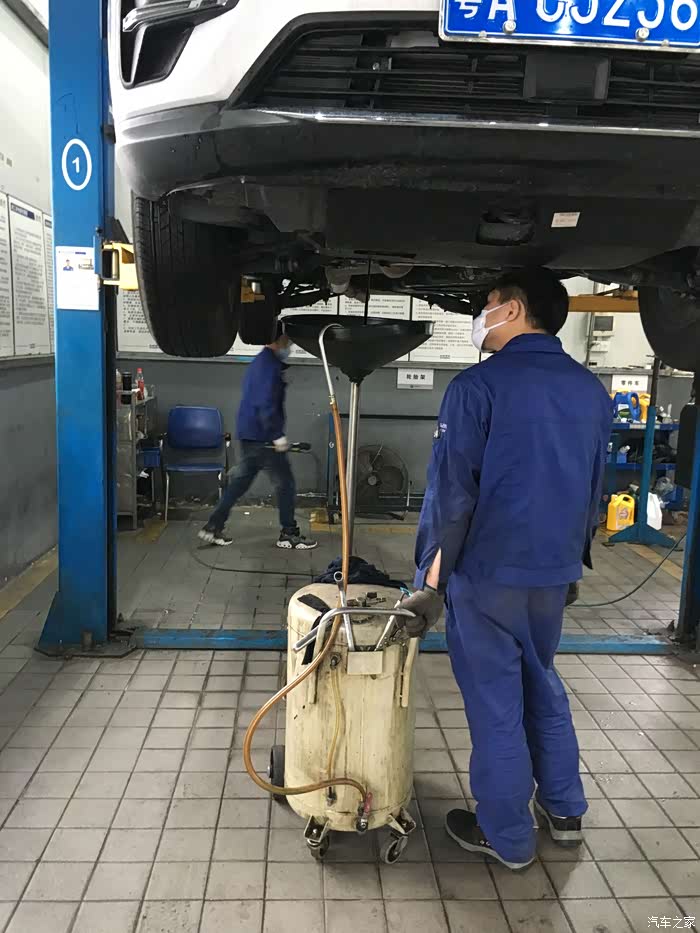 来得早车辆不多,两个师傅做我这一台车,一个放机油,一个在检查四轮胎压