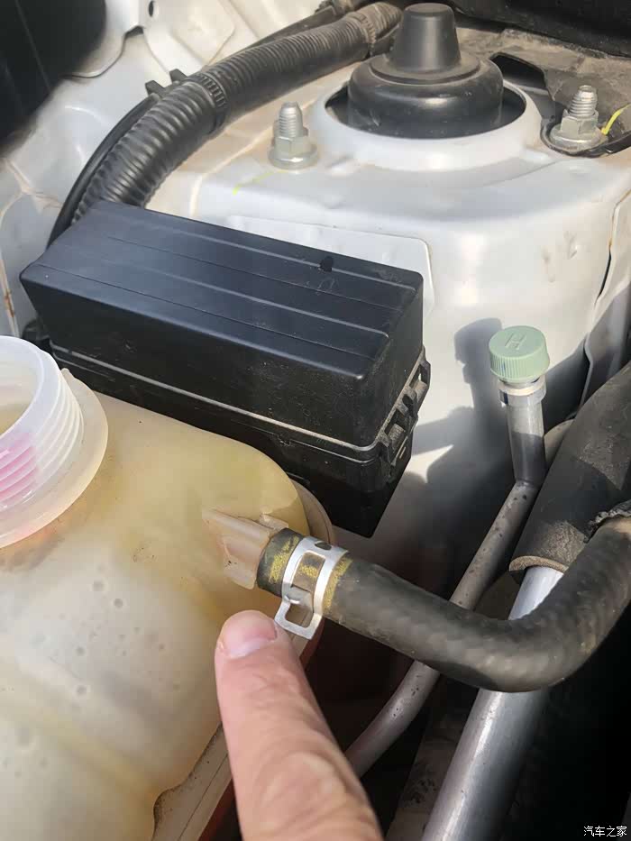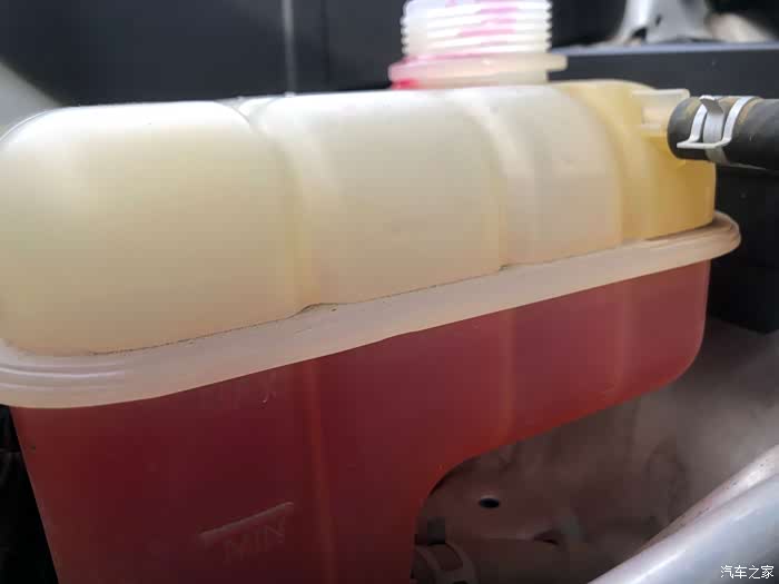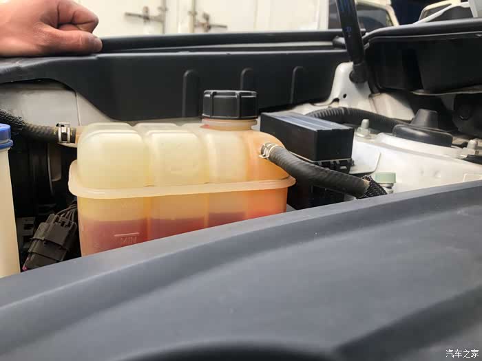 这时候排出的空气使防冻液降低了一部分。