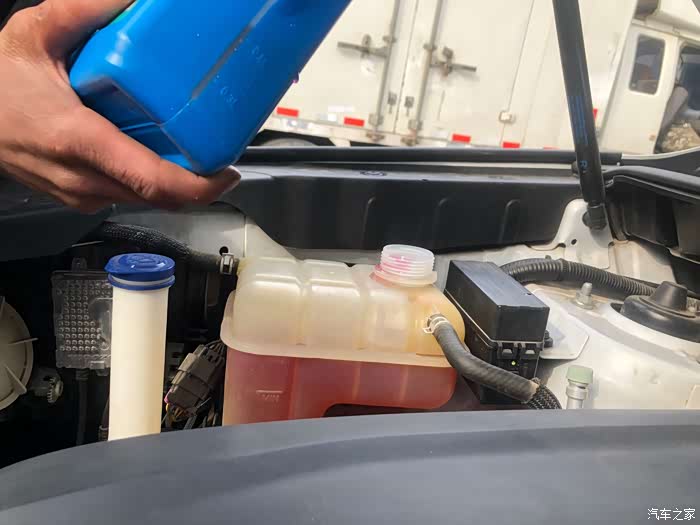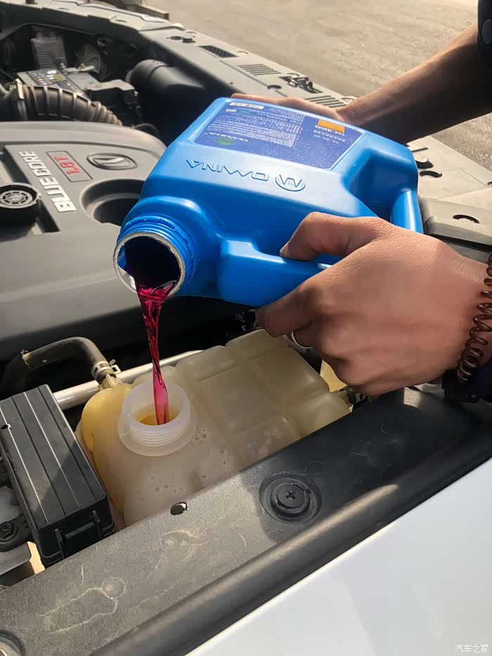 注入新的防冻液,也是红色的,颜色必须跟原车防冻液保持一致,这是防冻液首先考虑的环节。