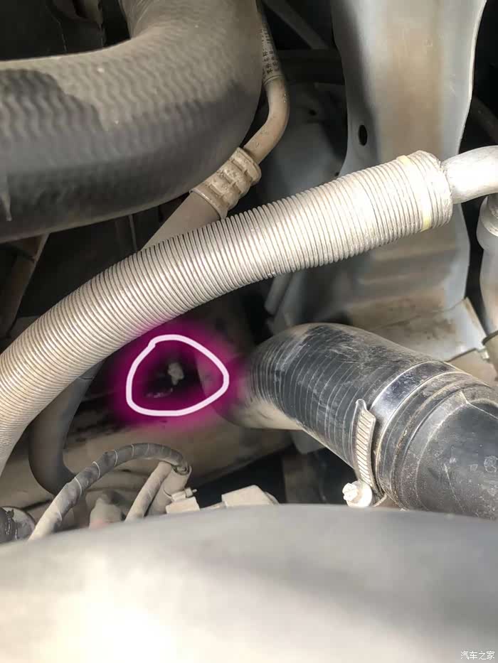 打火启动,观察这个部位,是否有空气排出,如果有,一切正常。
