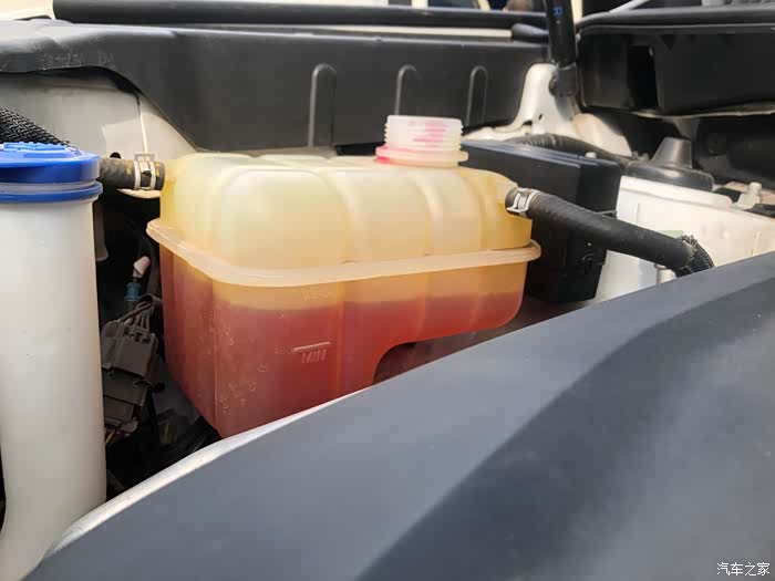 这就是防冻液,三年半了,一直没换过,液体已经低于下限了,考虑再三,直接换新,不添加了。