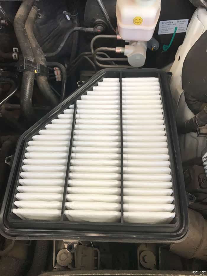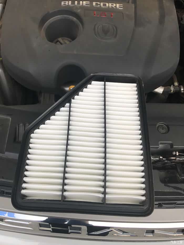 打开空气滤芯盖,这就是原厂的空气滤芯了,看起来不是很脏哈。