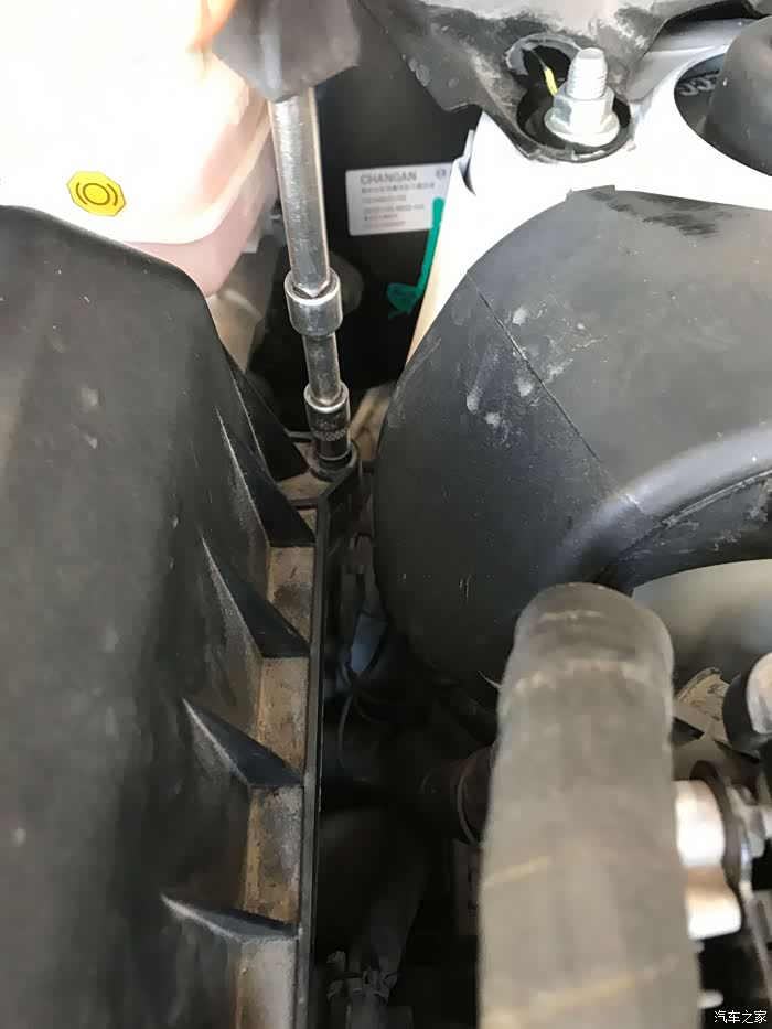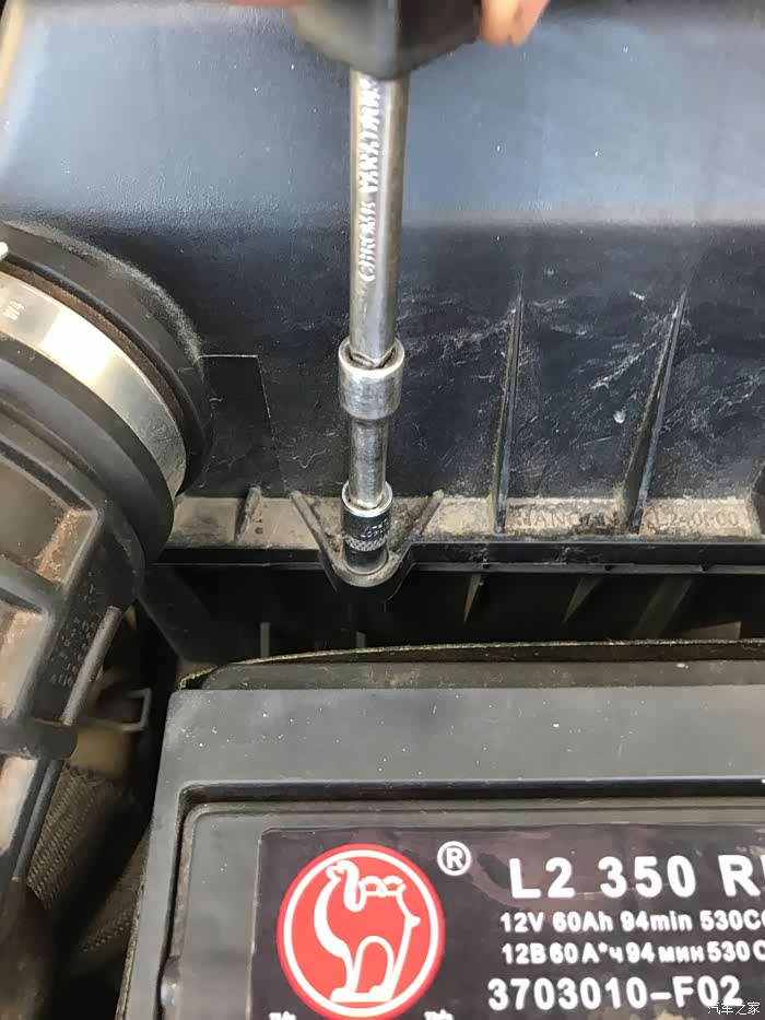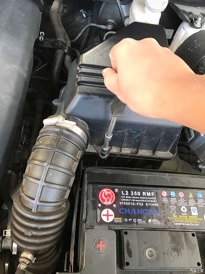 把空气滤芯盖子归位,开始上螺丝了。