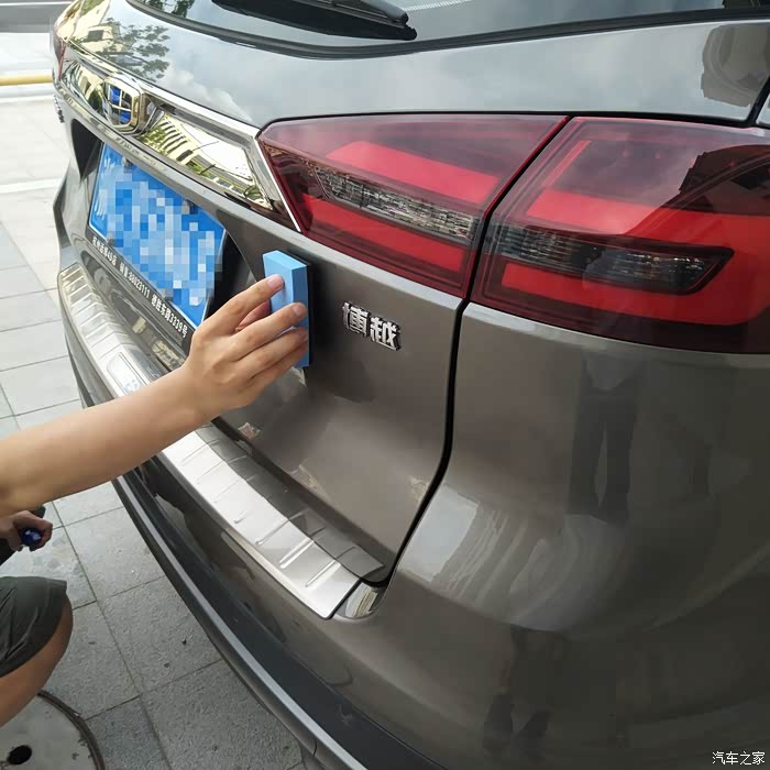 建议用高泡海绵,即使有小沙尘,也不容易划伤车漆,每个地方都打到位,也是从上到下