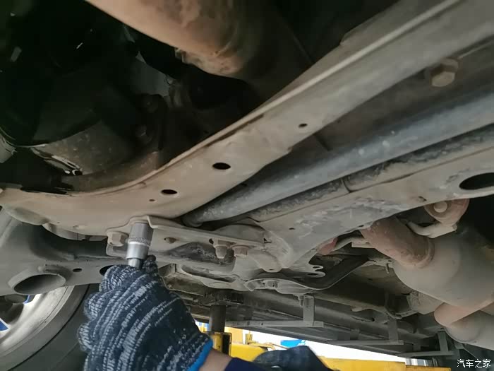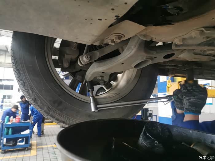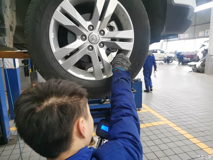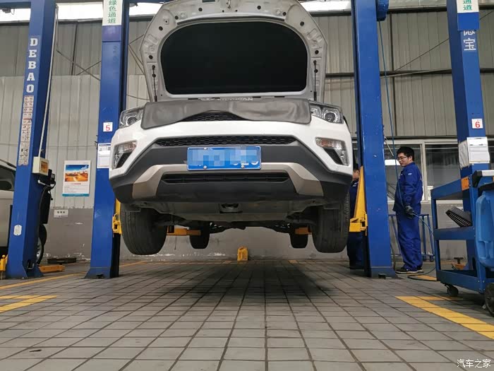 维修师傅正在给车友爱车底盘螺丝加固,非常认真负责,不得不为长安售后点赞