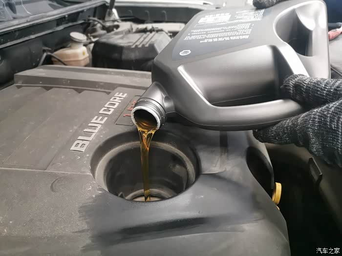 添加机油,新鲜的机油源源不断流入发动机