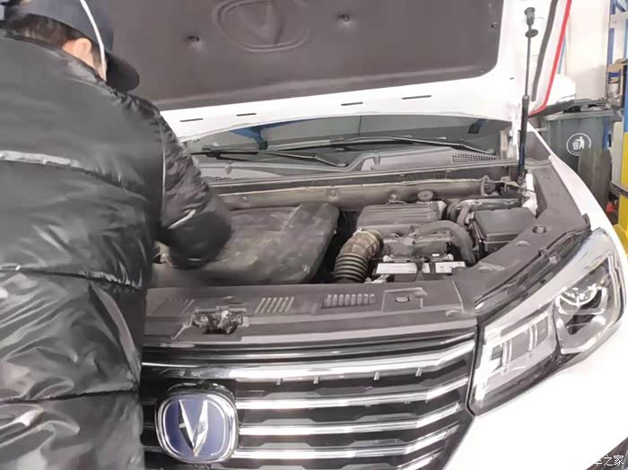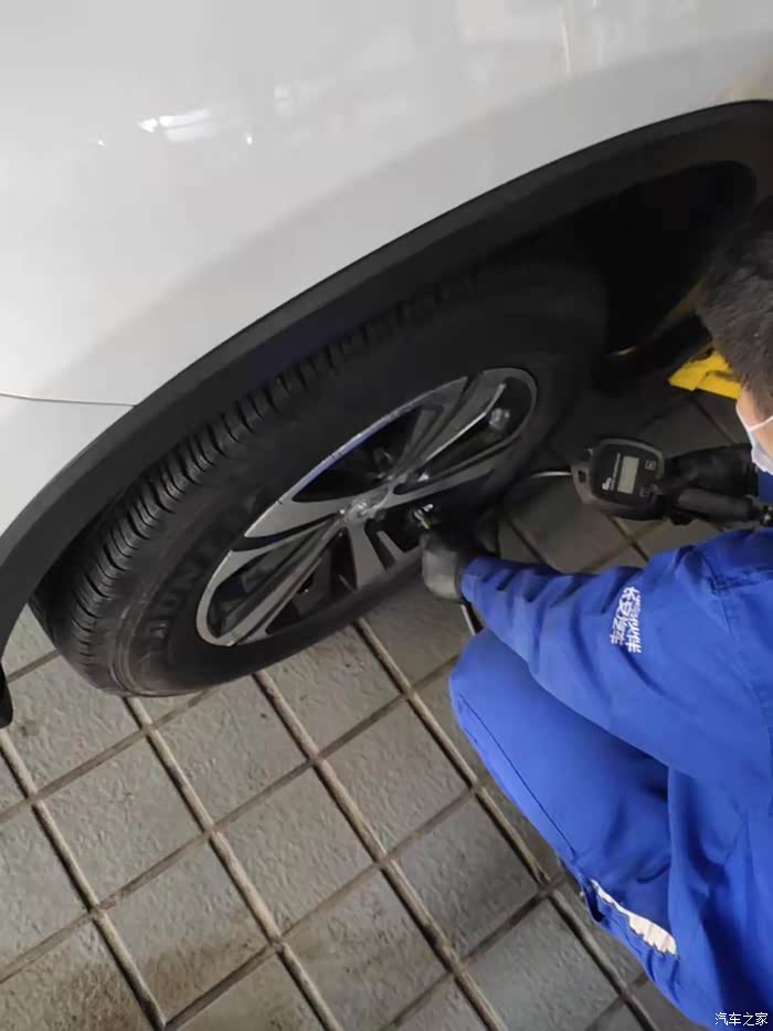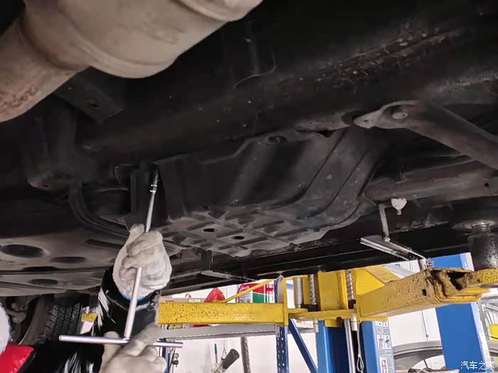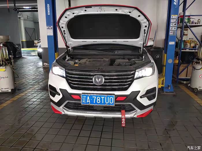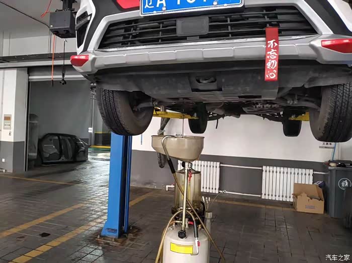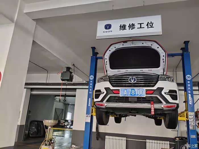 进入服务站,确认好保养项目之后,车子开进工位,准备开工。
