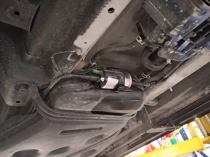 打开汽油滤芯护板。