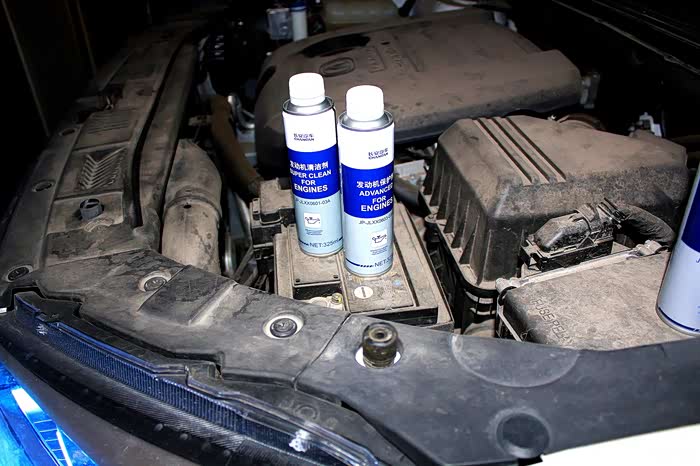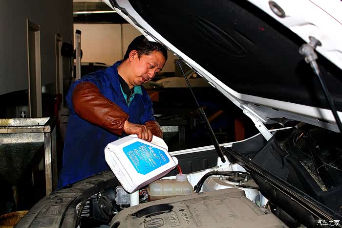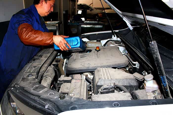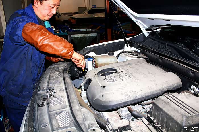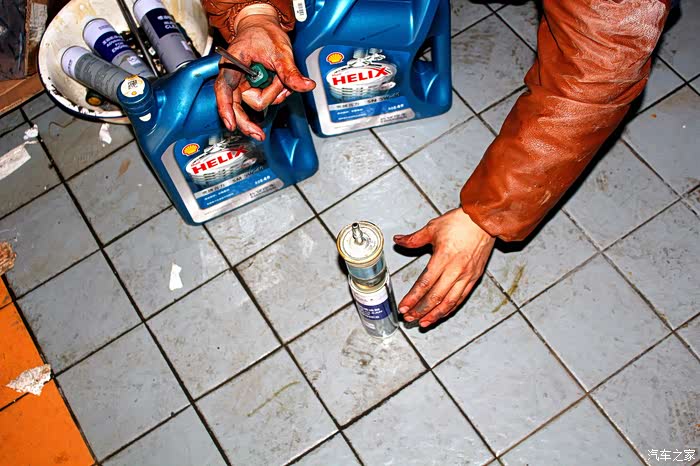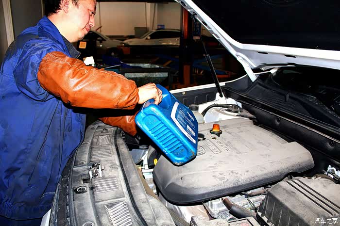 在加入机油前,维修师傅加入了发动机保护剂