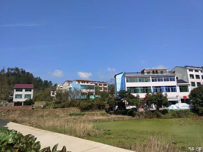 远远望去,村中五彩的楼房一排排,青山绿水,蓝天白云,绝佳的居住之地。