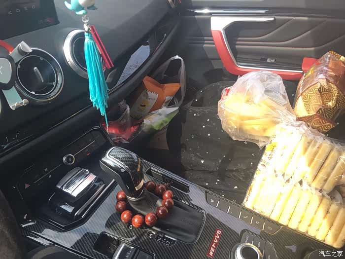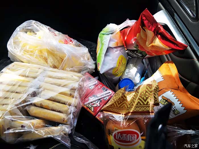 好了,副驾驶的女王专座,出行游玩,零食堆满。
