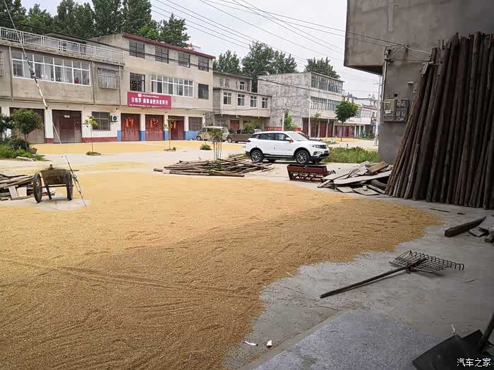 家门口收的小麦,所以停别人家门口了。