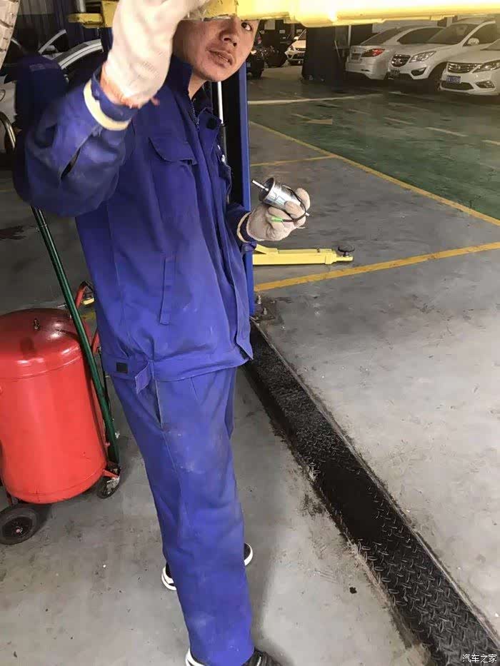 爱车升起,首先发机油。小哥非常认真。