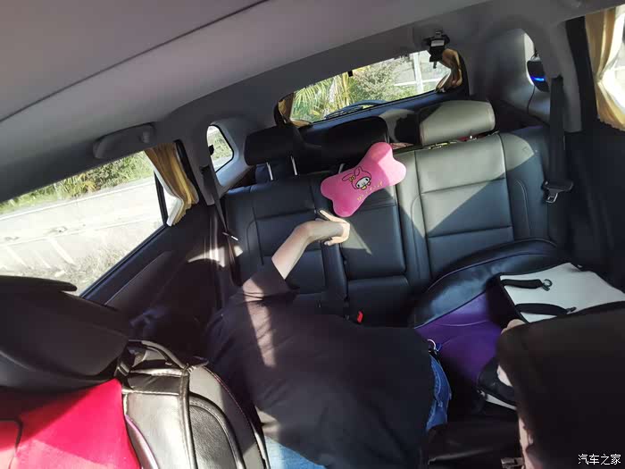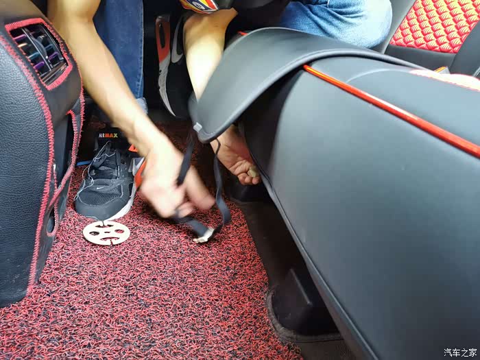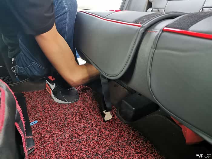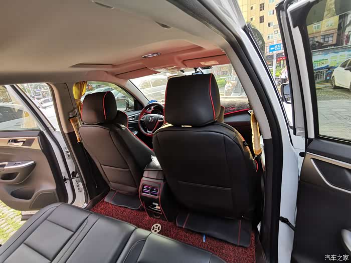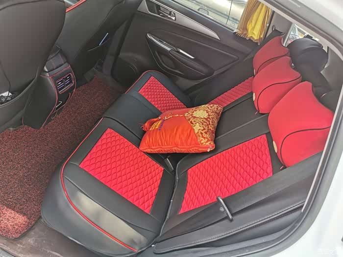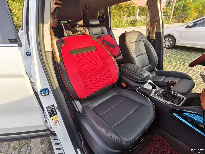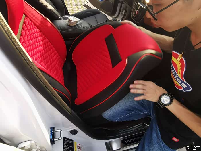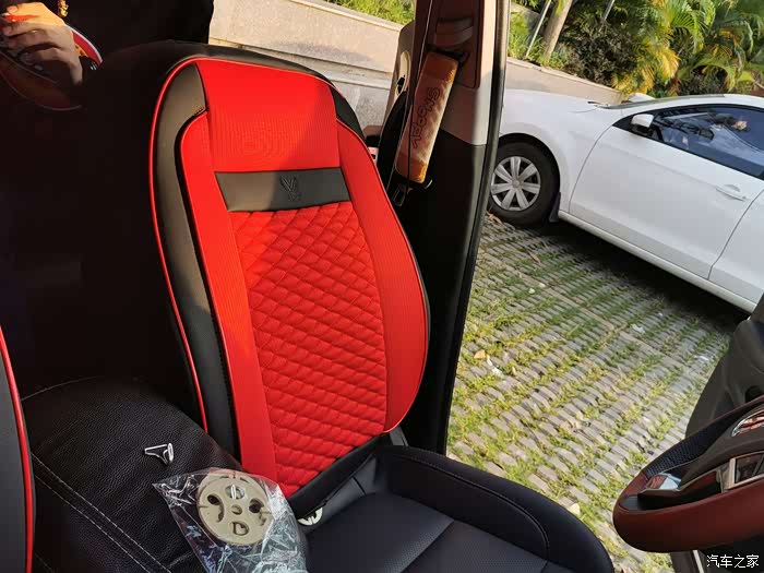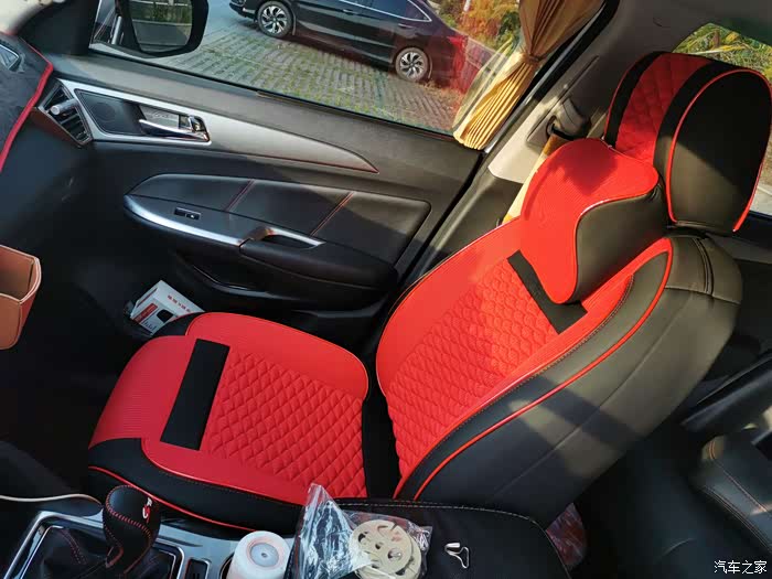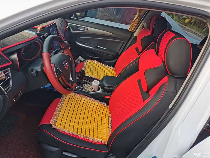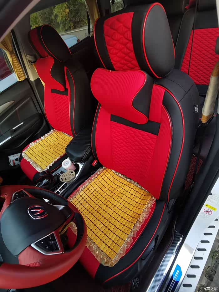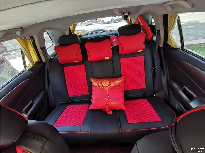 副驾驶红红的桌椅套套上去就有一种新车的感觉;