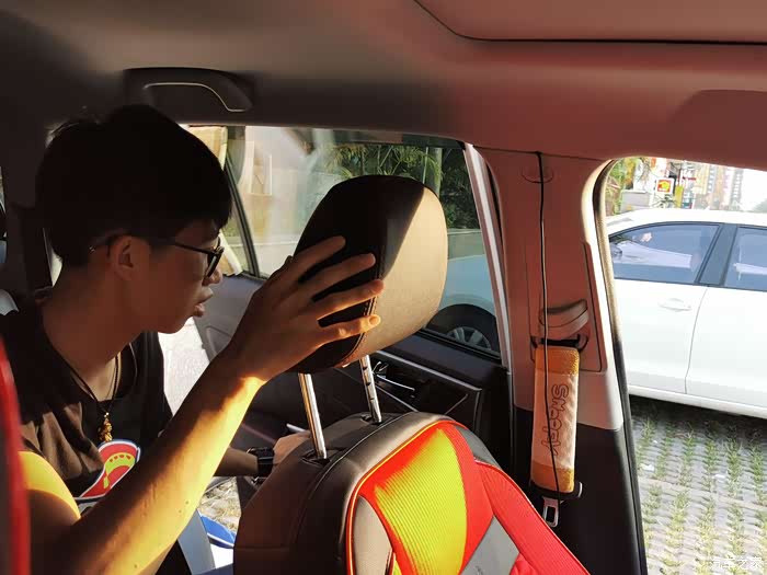 前排座椅套安装效果,安装非常满意,老板还送了两块席垫座,夏天就更加的两块舒服了;