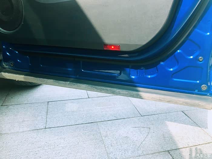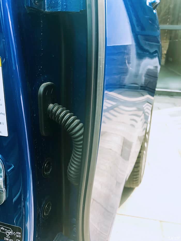 车门打开,下面包着东西,免得下雨的时候。把车边上的边缘弄脏了 这个细节设计挺好的。