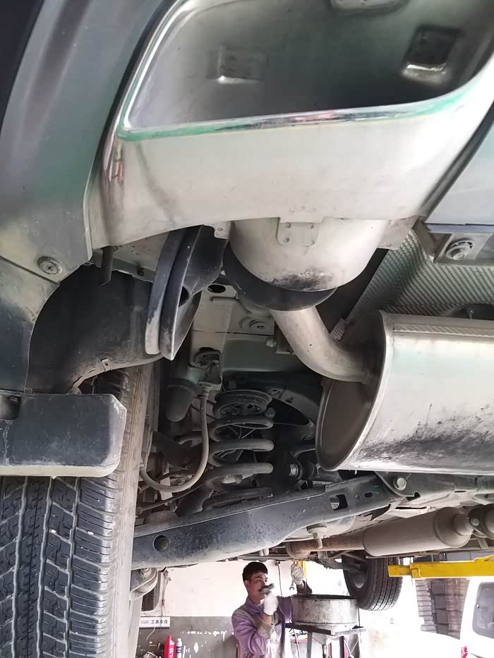 举升起来才看得到底盘的样子,底盘状况良好,并无异常。可以看到各类配件都还是保持原有状态。