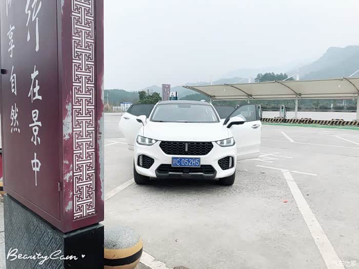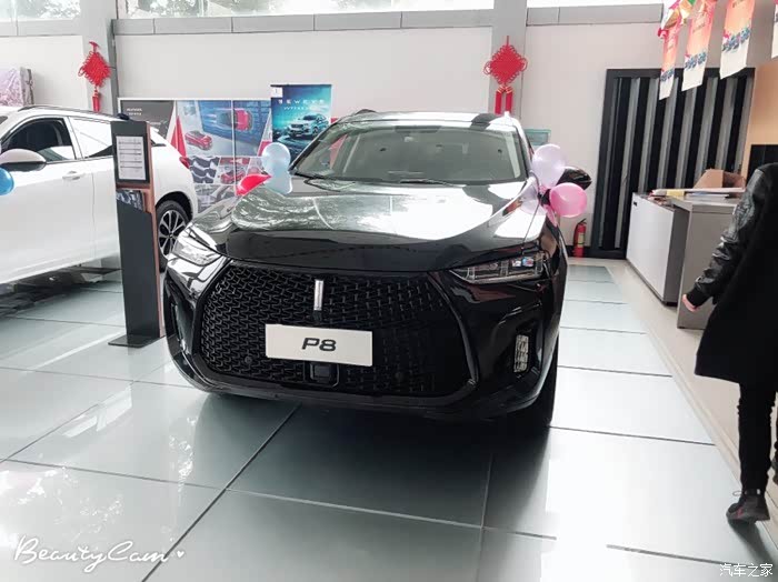 到啦~保养的地方,我还是第一次看见WEY的油电混动版P8??呢!以前没见过实车!上去试坐了一下感觉还不错!