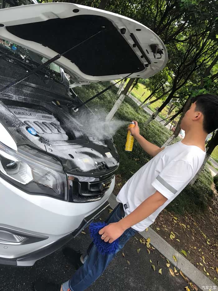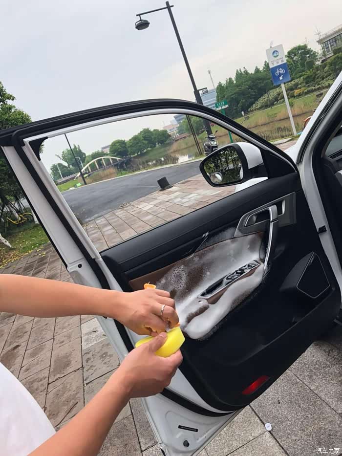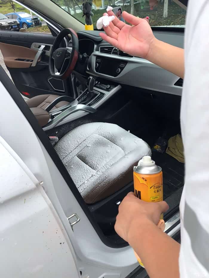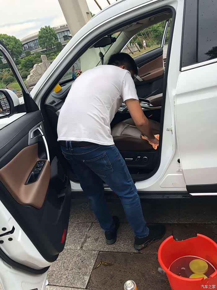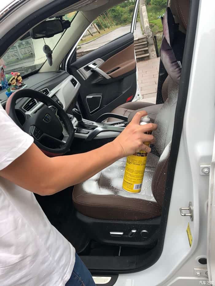 玻璃水加完,发动机舱清洗好,开始清洗座椅啦