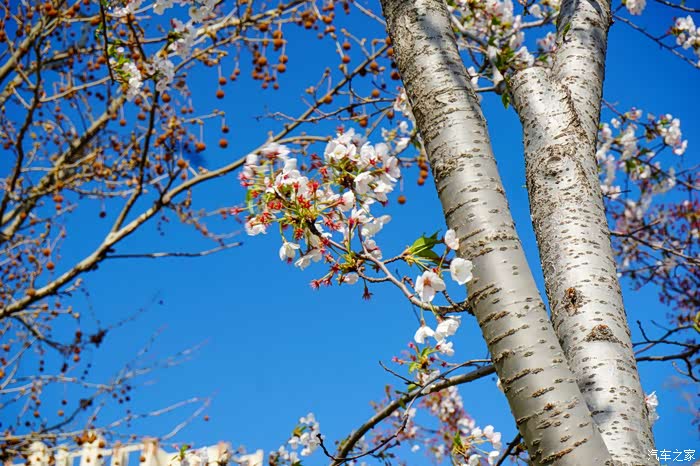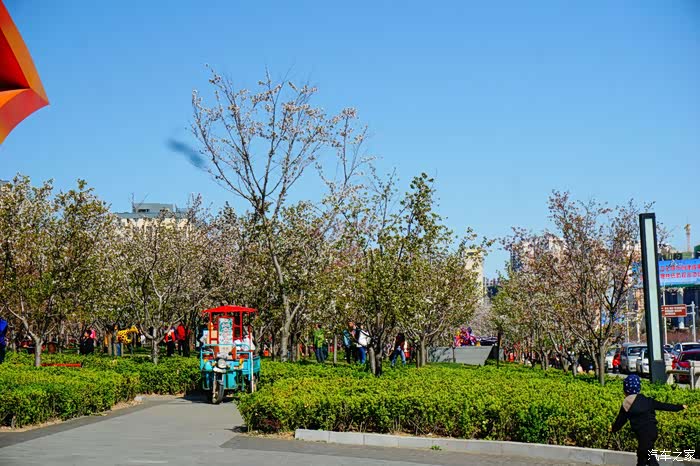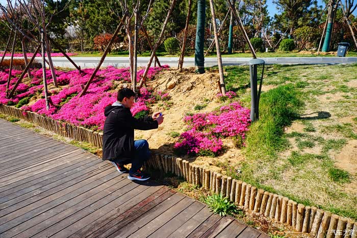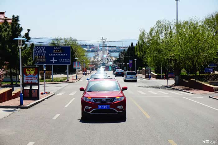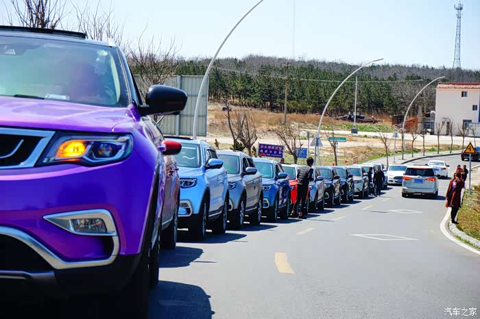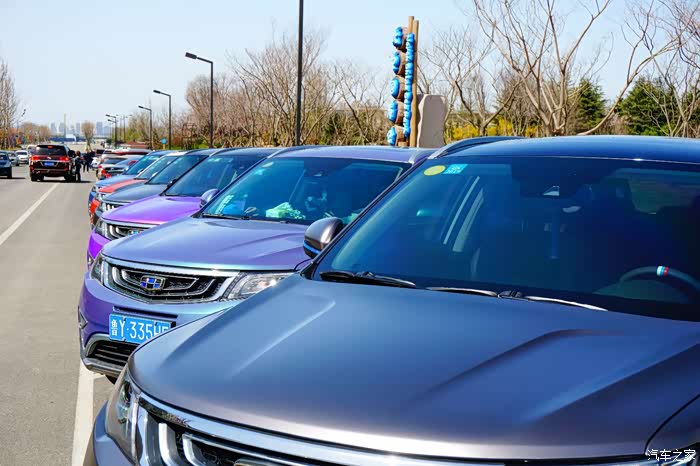 烟台是充满朝气的,万物复苏,路边的小树都冒出了嫩芽。人们走上街头,流连在各种美景之中。自从有了博越之后,我出行的心理越来越迫切,一有空闲我就筹划着去这里到那里的。这不正好车友会里有车友提出想去里蹦岛玩,顺便看看樱花。于是乎,会里炸开了锅,车友们你一言我一语,很快这次行动成行了。接下来就是商定时间,联系车友,组织车队等等,当然这都是年轻会长要忙的事了。我也没闲着,到网上查找了里蹦岛等地方的资料,居然还真有所发现:里蹦岛有中国第一条海上音乐公路,好像是在2014年建成的,当汽车驶入音乐公路路段,马路会随着车速发出悠扬的节奏,目前,里蹦岛音乐公路收录两首乐曲,为贝多芬的《欢乐颂》及乔治?比才的《斗牛士之歌》。资料显示是要保持车速40公里,这点对于博越来说太小儿科了,一个定速巡航完美搞定。最近车友们不再满足于满大街相同的车型,相同的颜色,于是流行起了贴改色膜,凸显自己的个性与张扬。照片看了很多,但是没有见过实物改车的,心里不免有点小激动,很快到了出行的日子,早早的来到集合地点,慢慢的车友们来的越来越多,各种颜色的博越齐聚一堂,宛如一个小型的博越车展,不过这个是一样的车型不一样的颜色,看那边:黑色、白色、红色、蓝色、紫色;看这边:珍珠银、苹果金、渐变绿、战斗会。一辆辆不同颜色的博越汇聚成了一条七彩缤纷神龙。车友会会旗镇楼。