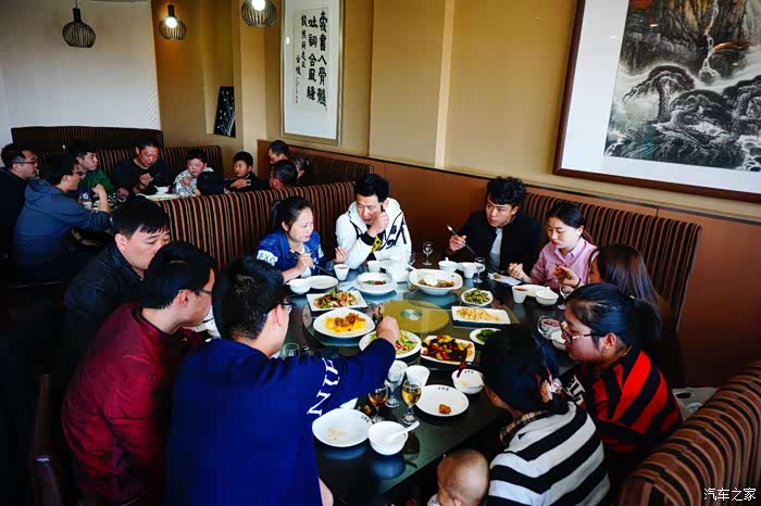 席开几桌,车友们吃起来,当然开车的不能喝酒。
